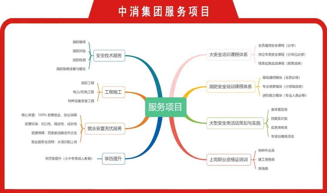 安全无小事,责任重于山。我司为专业消防服务企业,可提供全套消防技术服务,包括消防工程施工,消防隐患排查与整改、消防维保检测评估等技术服务,同时可以提供安全专题讲座培训及大型演练活动,也是安全生产大型活动策划与实施的专业机构,具有多名入选专家库的消防工程、安全工程师;精心策划,细节服务是我们的服务宗旨,培训成果也得到了众多单位的高度肯定。